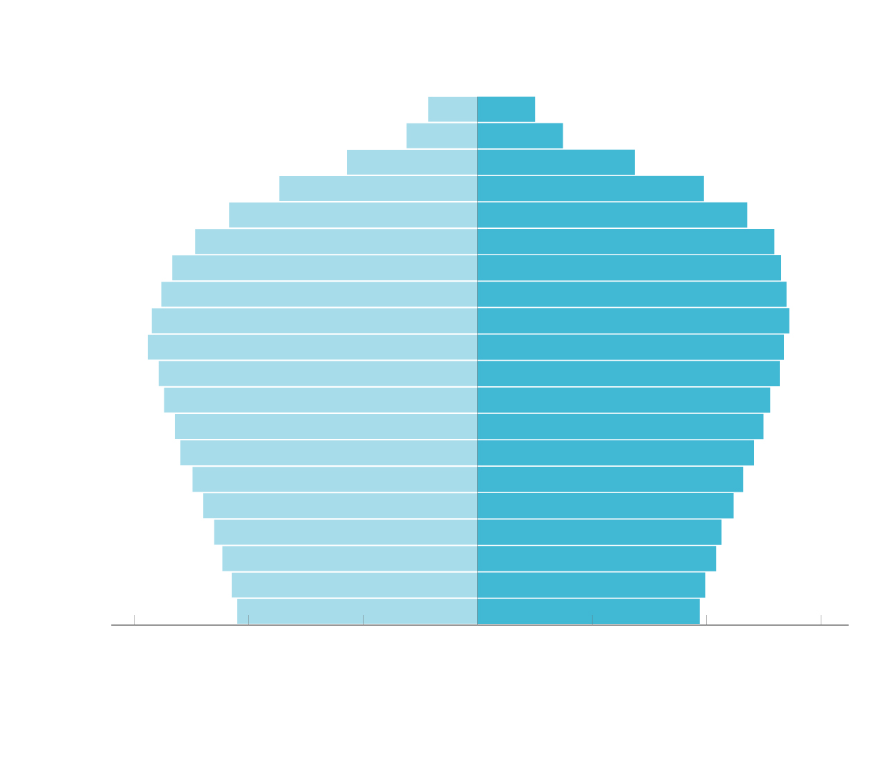El futuro que plantea este estudio es el de un planeta extraordinariamente envejecido en 2100, en el que los mayores de 65 años rondan los 2.300 millones, en comparación con tan solo 1.700 millones de menores de 20 años. Habrá el doble de personas mayores de 80 años que menores de 5 (800 millones frente a 400). Este cambio brutal en la pirámide demográfica afectará a las relaciones de poder entre los países y a su capacidad de mantener la solidez de su economía con una fuerza laboral menguante y avejentada (al margen de lo que la robótica pueda ofrecer, que los autores del estudio no se atreven a pronosticar). Por ejemplo, la fuerza laboral de China pasará de los 950 millones a unos 350 millones, y su poder militar se verá seriamente menguado al perder el 65% de los jóvenes entre 20 y 24 años.