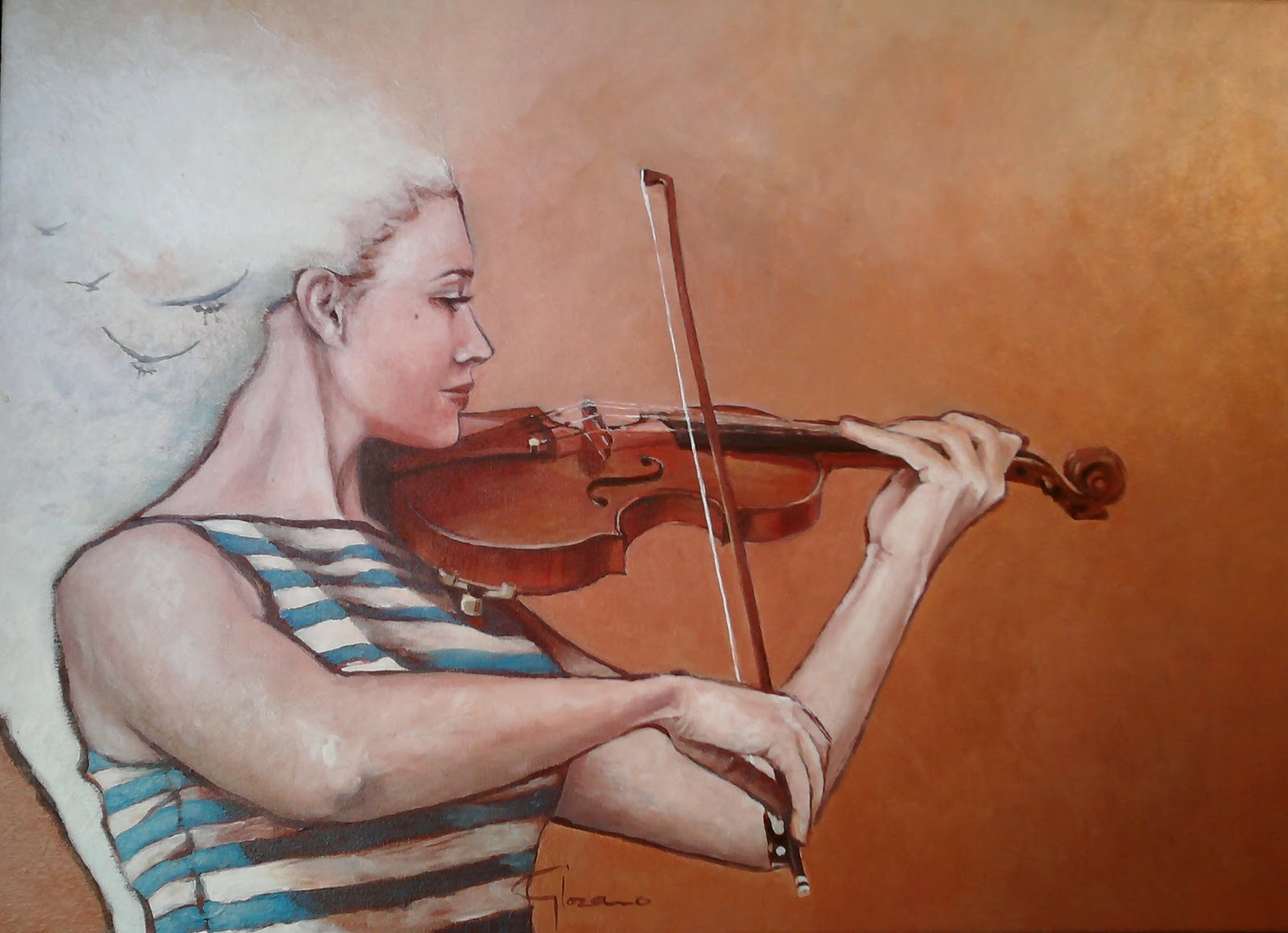 aquella mañana de cielo feliz, la muchacha, violín en mano, llamó a la puerta