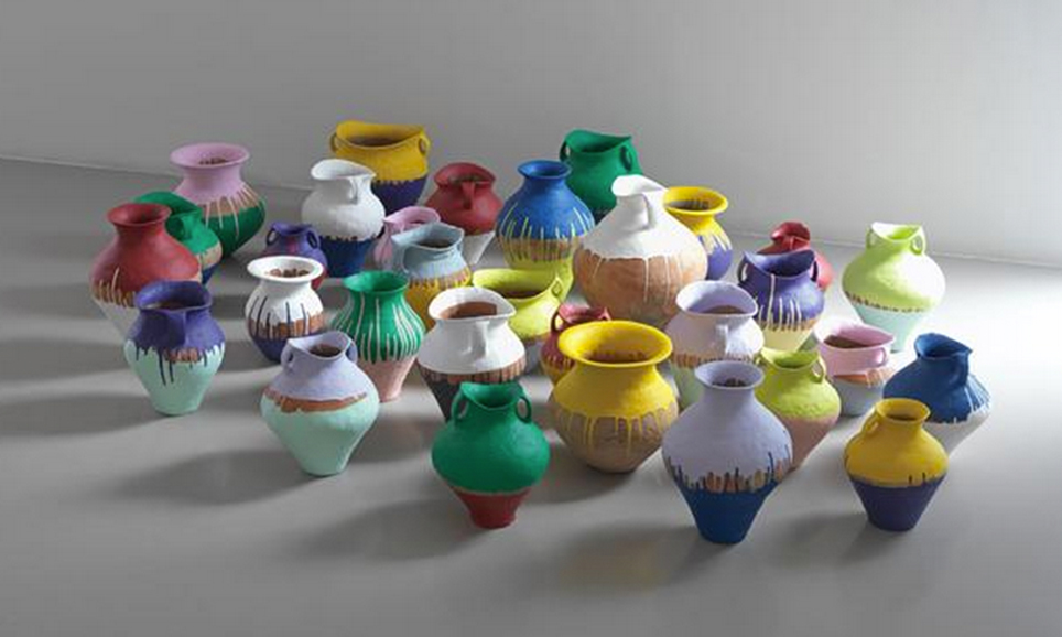 En el ámbito de las transformaciones vibrantes, «Jarrones de Colores» toma el centro del escenario. Elaborado en 2006, Ai Weiwei tomó jarrones chinos tradicionales y los sumergió en pintura industrial de colores brillantes. ¿El resultado? Un revoltijo de colores que difumina las líneas entre la tradición y la modernidad. Es como una fiesta de pintura donde los artefactos antiguos se convierten en el lienzo de una obra maestra contemporánea.